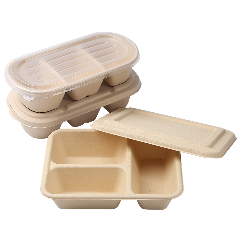 Pulp three-grid lunch box Disposable environmental degradable delivery bento box Fitness lunch box with lid Salad box