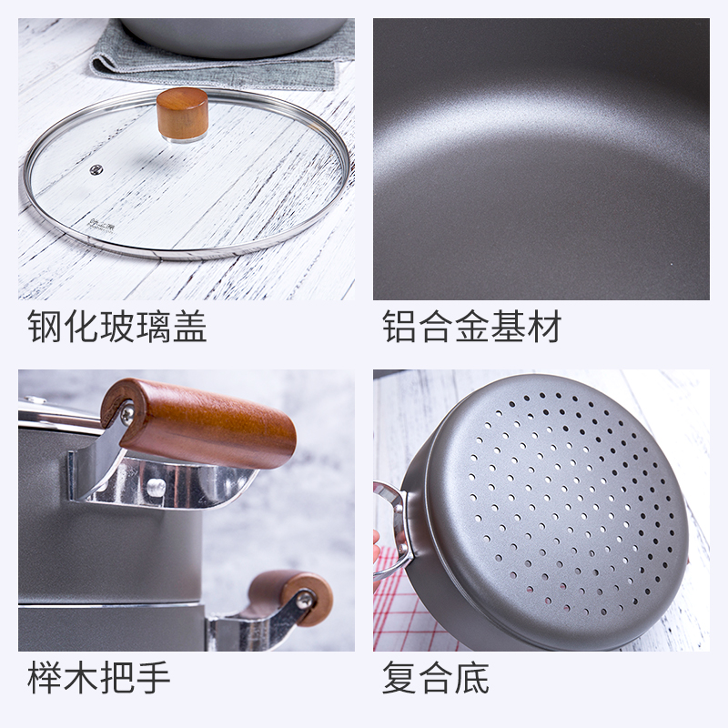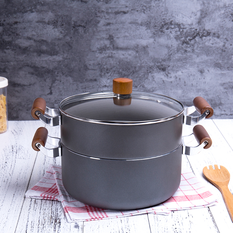 Carse kitchen 24CM Two-layer steam boiler Home Non-stick Steam Cage Soup Pot Saucepan Multifunction Pot oven General