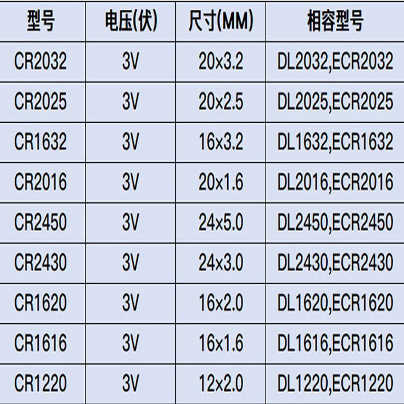 CR2032 CR2025 CR2016