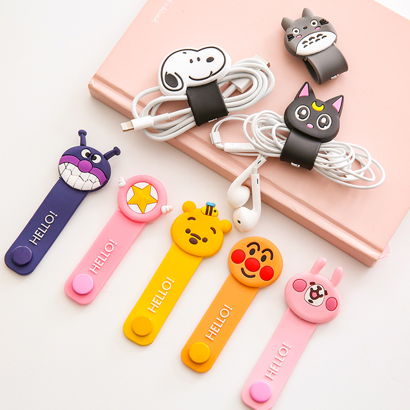Winder Silicone Cable Manager Apple Android Data Cable Headphone Cable Collection Metal Button Hub Cartoon Style