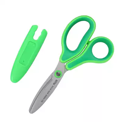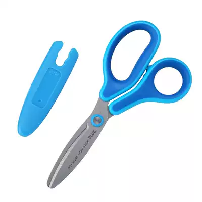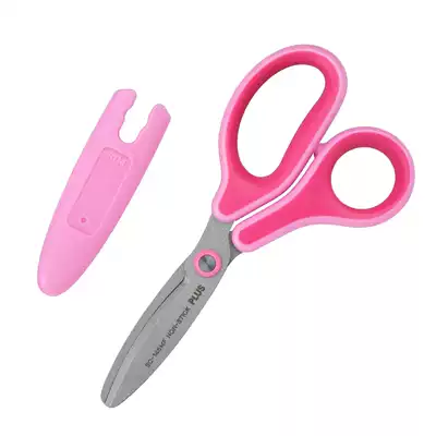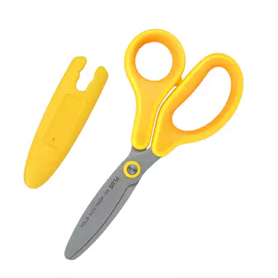 Japan PLUS Pulesi children's safety scissors Primary school kindergarten hand scissors with protective cover round head scissors