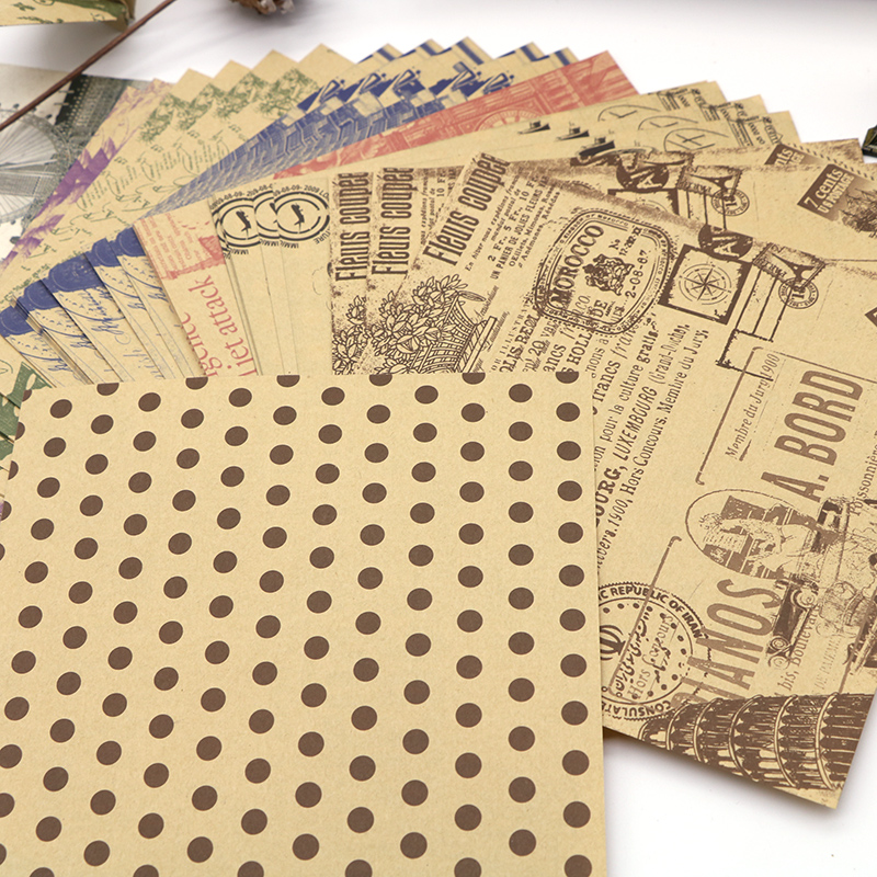 15 cm Square retro nostalgic nostalgia European and American double-sided printed handmade paper hand account patterned kraft paper material
