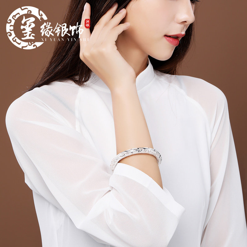 Nestles pure silver bracelet palace lace hollowed-out peacock feathers S990 foot silver bracelet women's hand ring yellow flying dada silver accessories