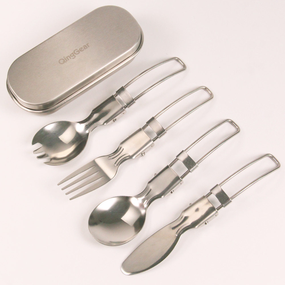 Folding knife fork spoon Three sets of folding knife fork spoon three sets 304 steel cutlery box spoon knife fork white hemp cloth bag spoon knife fork cutlery box fork spoon knife fork white hemp cloth bag fork spoon knife fork