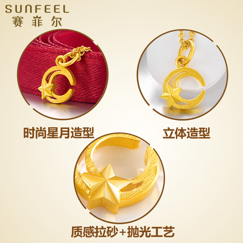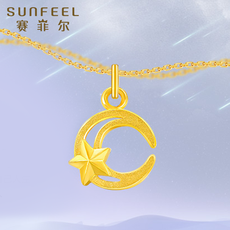 Saifir gold star moon pendant foot gold 999 9 net red minimalist light extravagant 100 lap collarbone chain delivery
