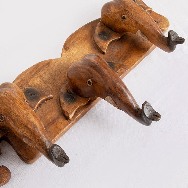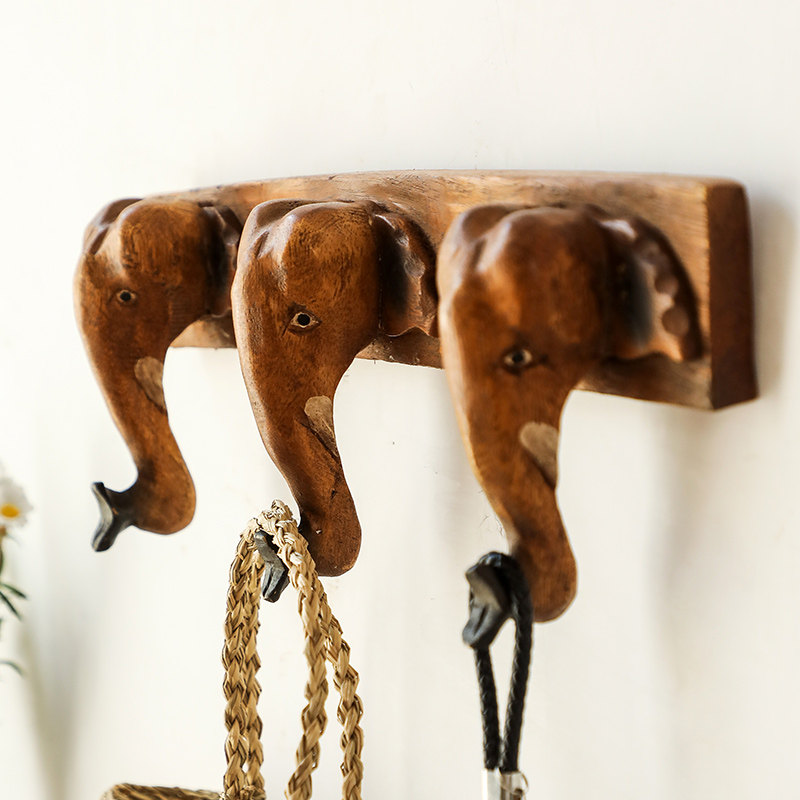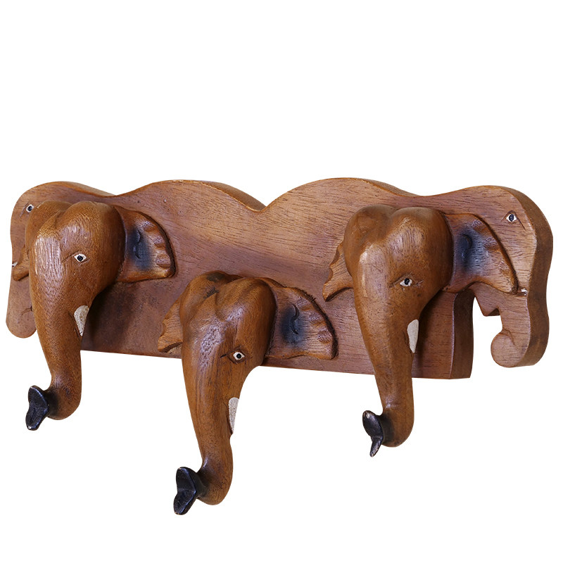 Iserie Solid Wood Cloister Sitting Room Wall Doorway Creativity Wall-mounted Hanger Southeast Asia Elephant Key Clothes Hook