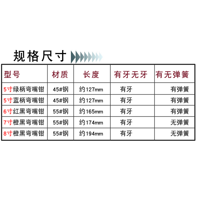 5 inches (toothless flat spring sheet) 6 with teeth, with springs (red and black) 7 with teeth, without springs 8 with teeth, without springs (bulk) 5 inches (with teeth spring) 5 inches (with teeth, with springs) 5 inches (without teeth, with springs) 5 inches (without teeth, with springs)