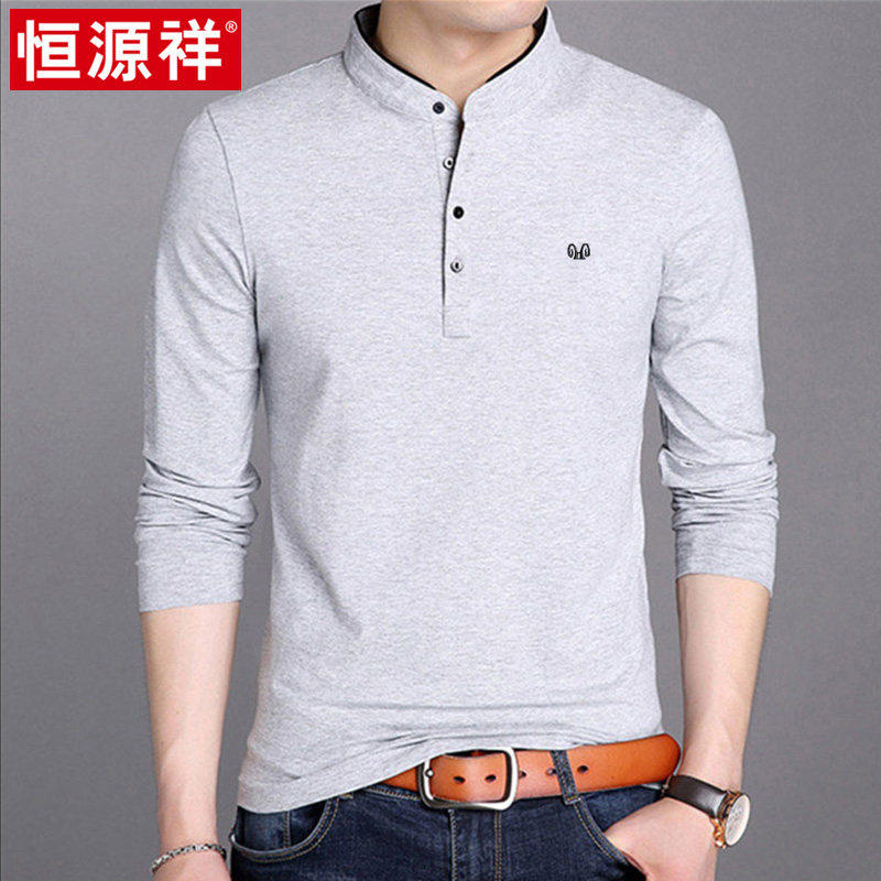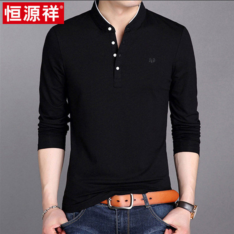 Hengyuanxiang autumn and winter clothing new men's plus velvet thick cotton stand-up collar long-sleeved T-shirt polo shirt bottoming shirt