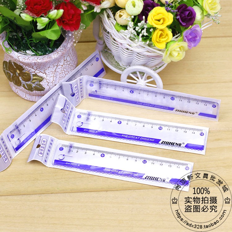 Elementary school children's plastic wavy line ruler 15cm transparent stationery grid ruler exam drawing ruler prize