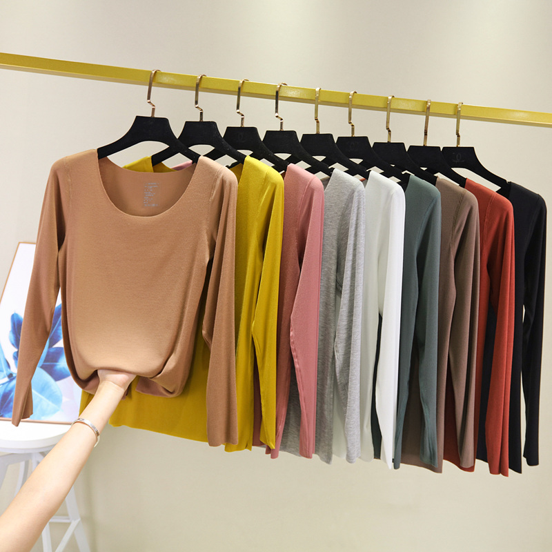 Modale No-mark round collar long sleeve T-shirt woman spring autumn pure color Nehitch body blouse with large size face mask for undershirt