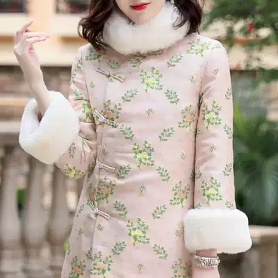 Winter cheongsam women thick long version retro dress Chinese mother dress improved Tang suit cotton padded jacket Chinese style cotton coat