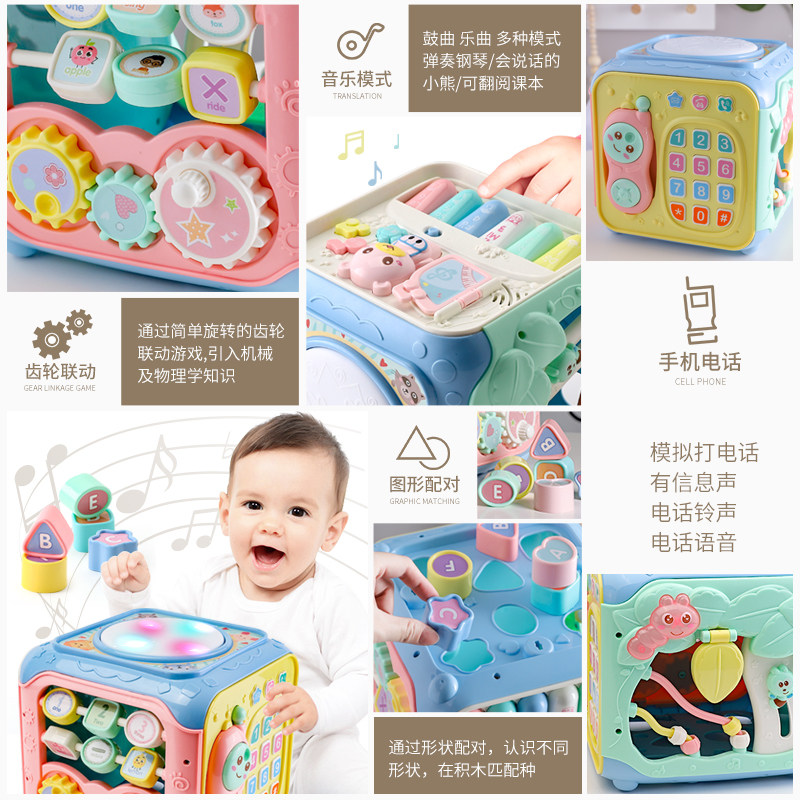 Shape matching Cognitive intelligence house Hexahedron Early education puzzle enlightenment toy One and a half year old baby baby six-sided box