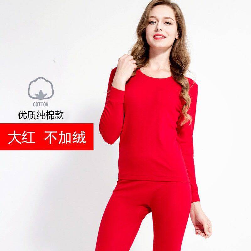 Romansa Ben Life Year Pure Cotton Underwear Sets Lovers Round Collar Autumn Clothes Sanitary Pants 100% Whole Cotton Men And Women Big Red Underwear