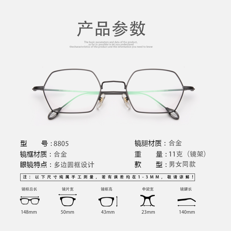 Retro glasses frame female myopia radiation proof glasses frame male polygon student flat mirror with anti-blue color change