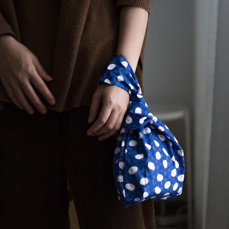 Japanese-style and wind wrist bag small bento bag knot wrist bag walking bend mobile phone key change simple cotton carry-on bag