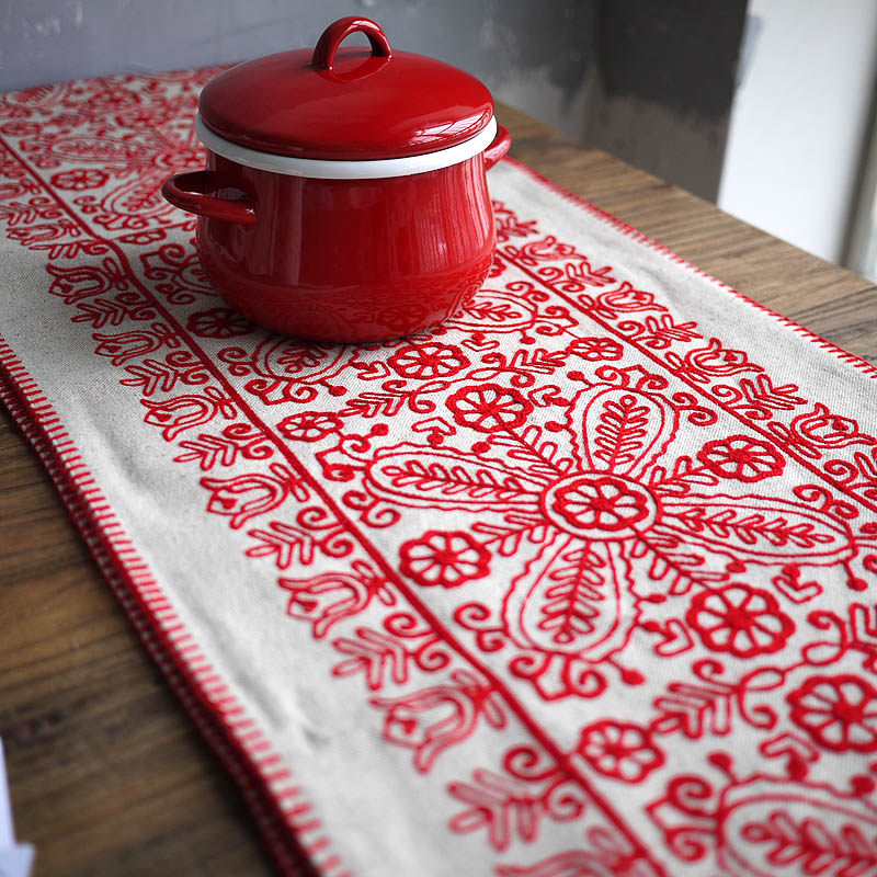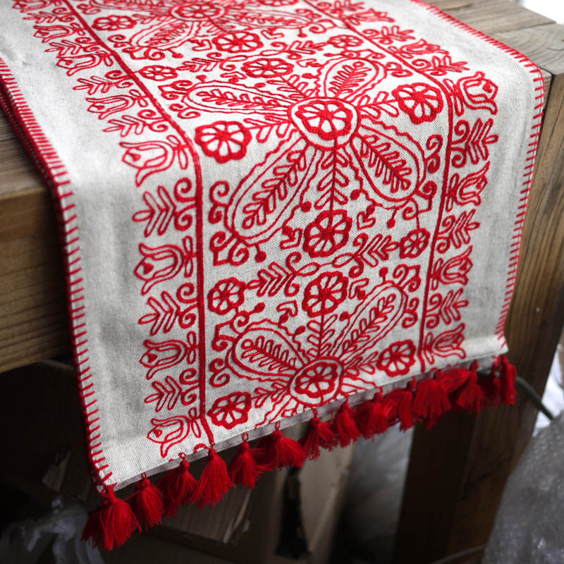 W1962 New Year Red Festive Window Embroidered Table Flag Pillow New Year New Weather Tea Table Scarf
