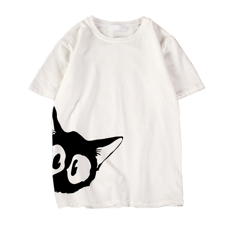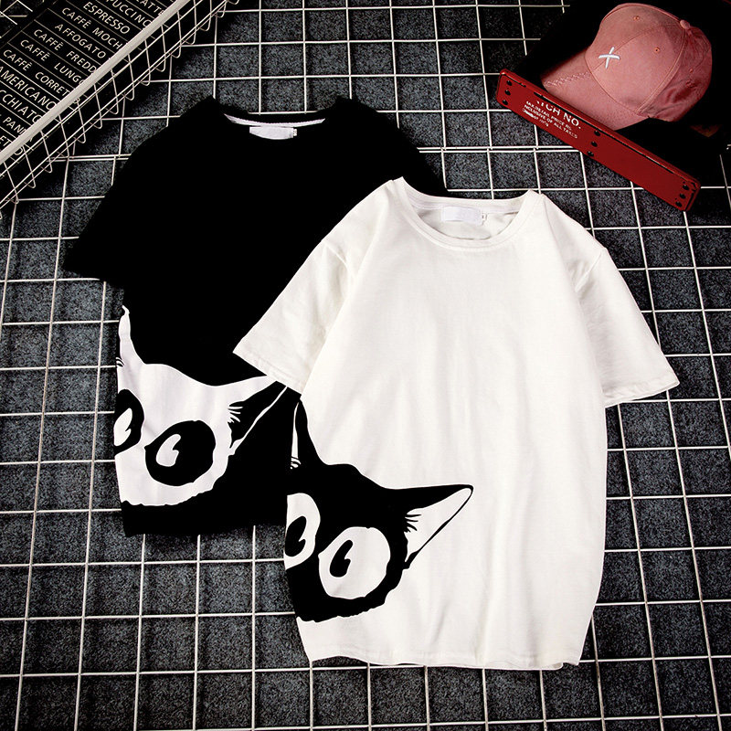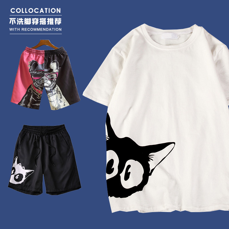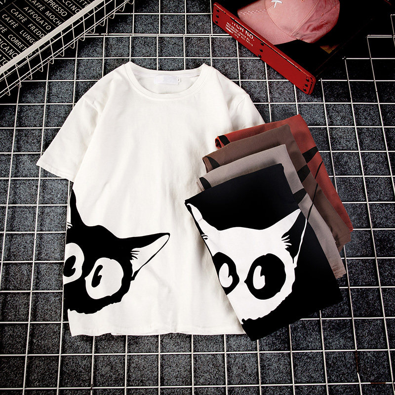 Hong Kong style ins kitten print short-sleeved T-shirt male plus size fat Harajuku semi-trend compassionate student clothes summer clothes