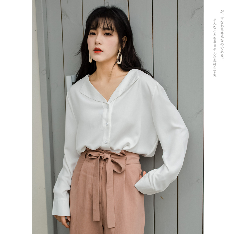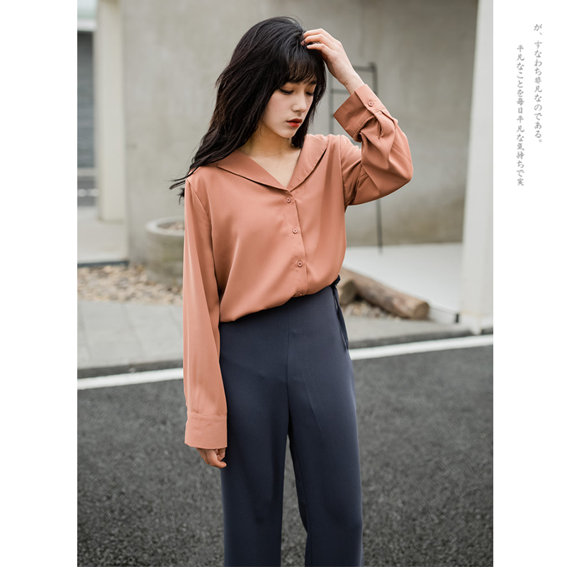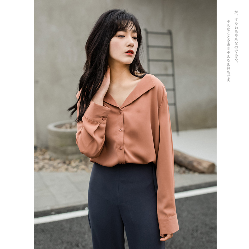 Design Sensation Small Crowdspinning V Collar Shirt Woman Spring Dress 2022 New Style Port Wind Retro Port Taste Blouse
