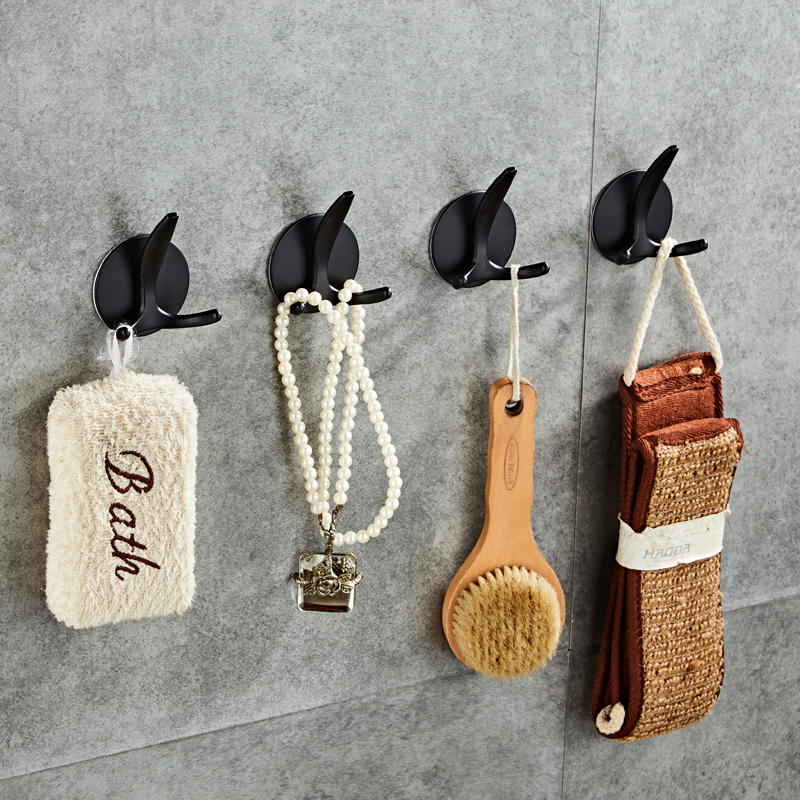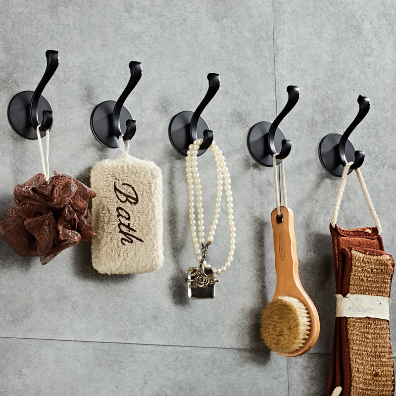 Eurostyle Black Free Punch Hook hood hook towel hook into door hanging clothes hook wall-mounted stainless steel bathroom row hook