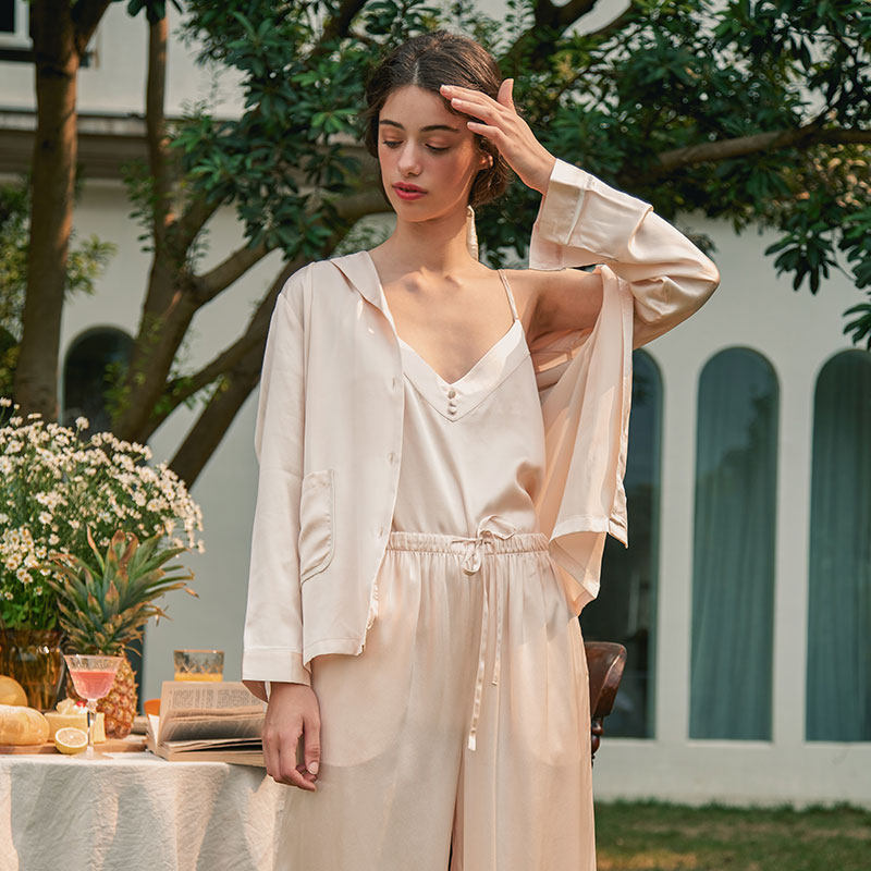 Not just Pajama silk pajamas women's spring and summer outerwear clothing design mulberry silk home clothing three-piece set