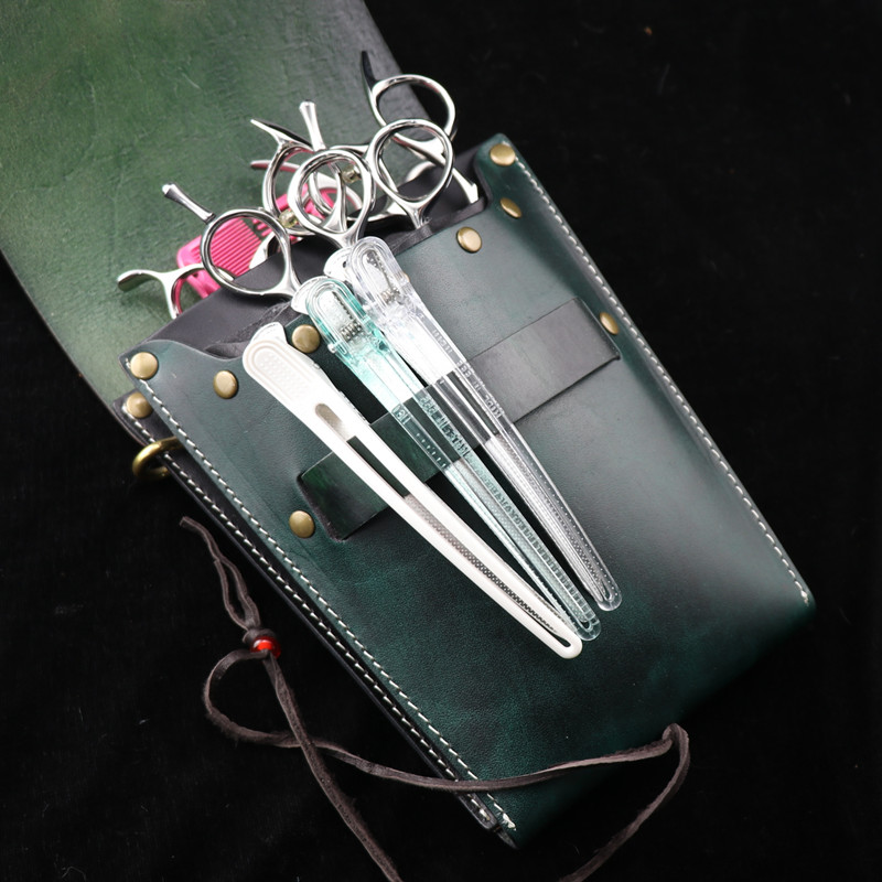 Beauty Hair Genuine Leather Hair Type Division High End Personality Creative Fashion Hairdressers Trendy Beauty Skew Satchel Scissors Bag