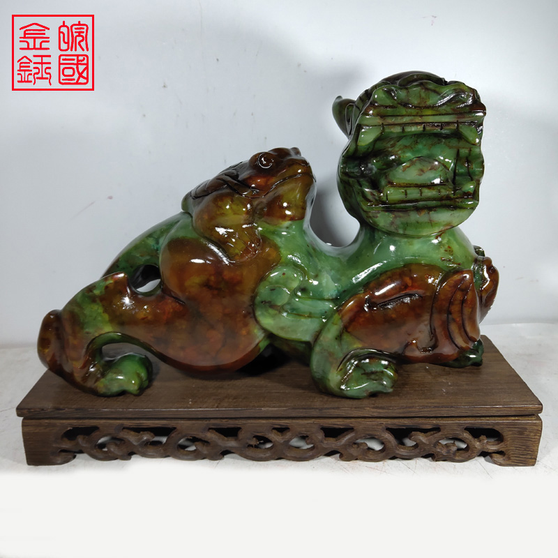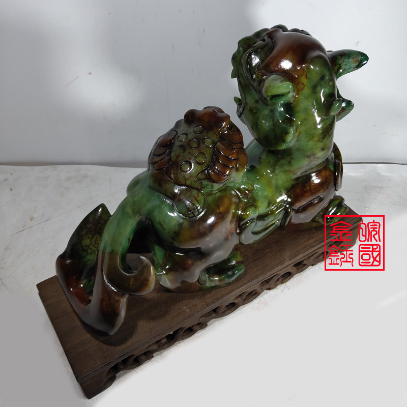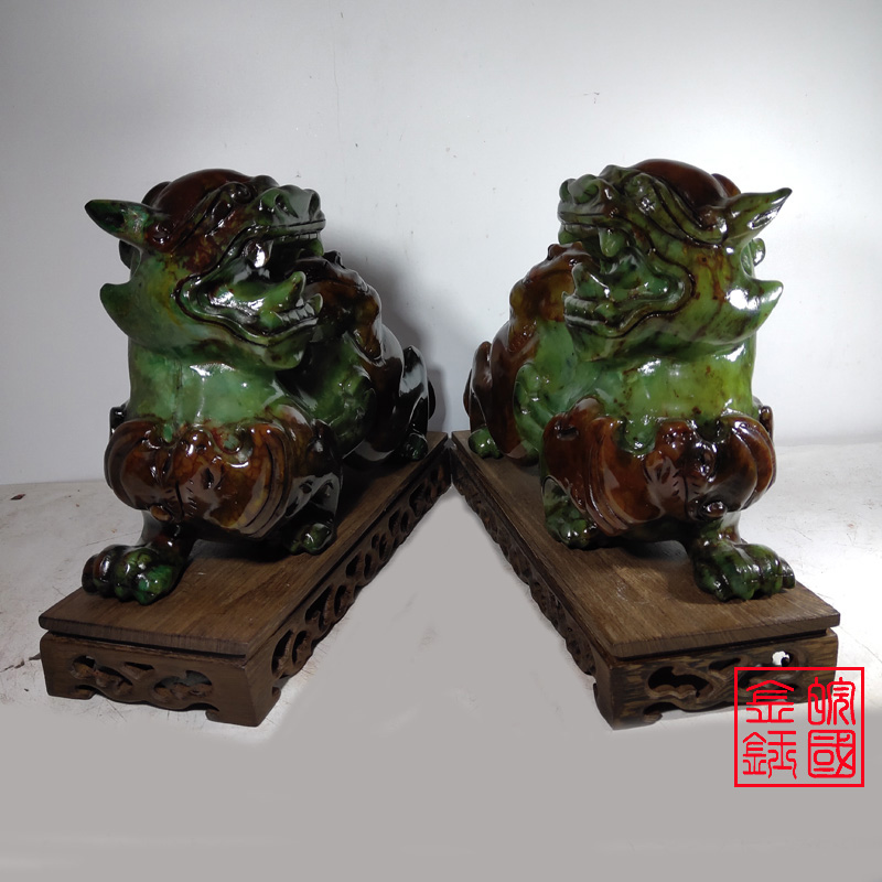 Anhui Guojin Yu 27CM jade Pixiu ornament large male and female pair Home craft gift ornament cash register counter ornament ornament