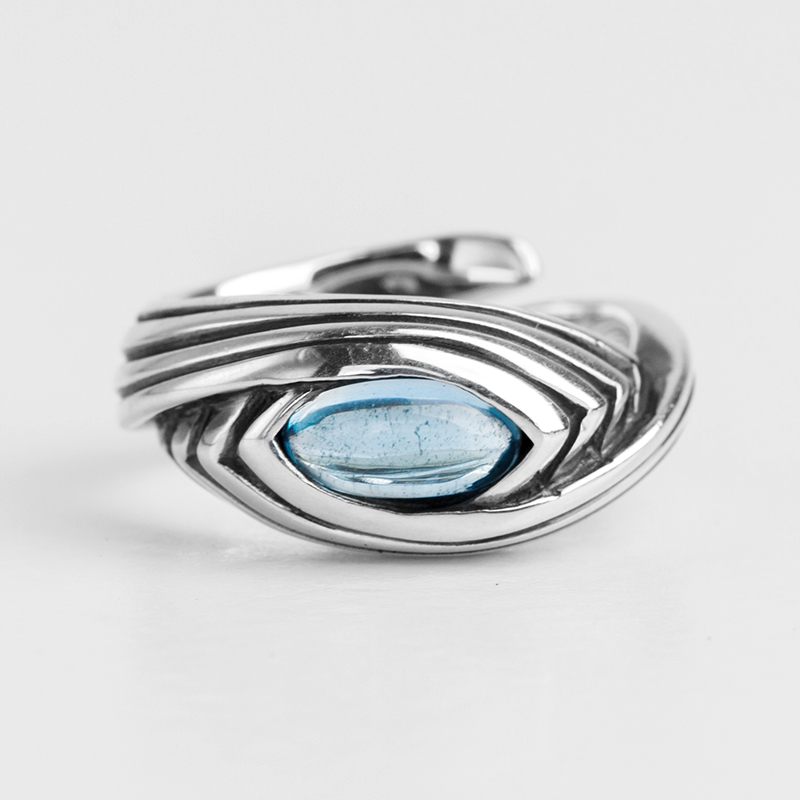 ruibeila925 silver vintage pattern Eye of God Topaz open ring Eye tail ring Nameless ring tide