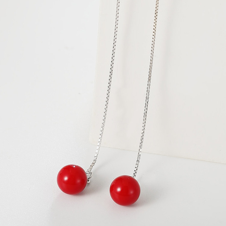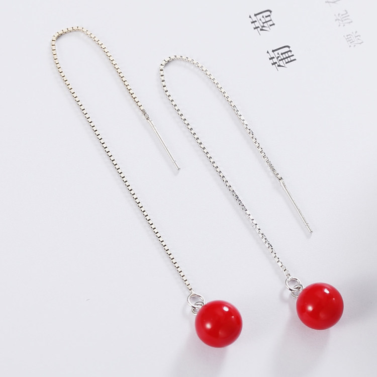 925 sterling silver earrings, earrings, earrings, mother-of-pearl pearl earrings, women's long tassel, Korean red earrings, hypoallergenic