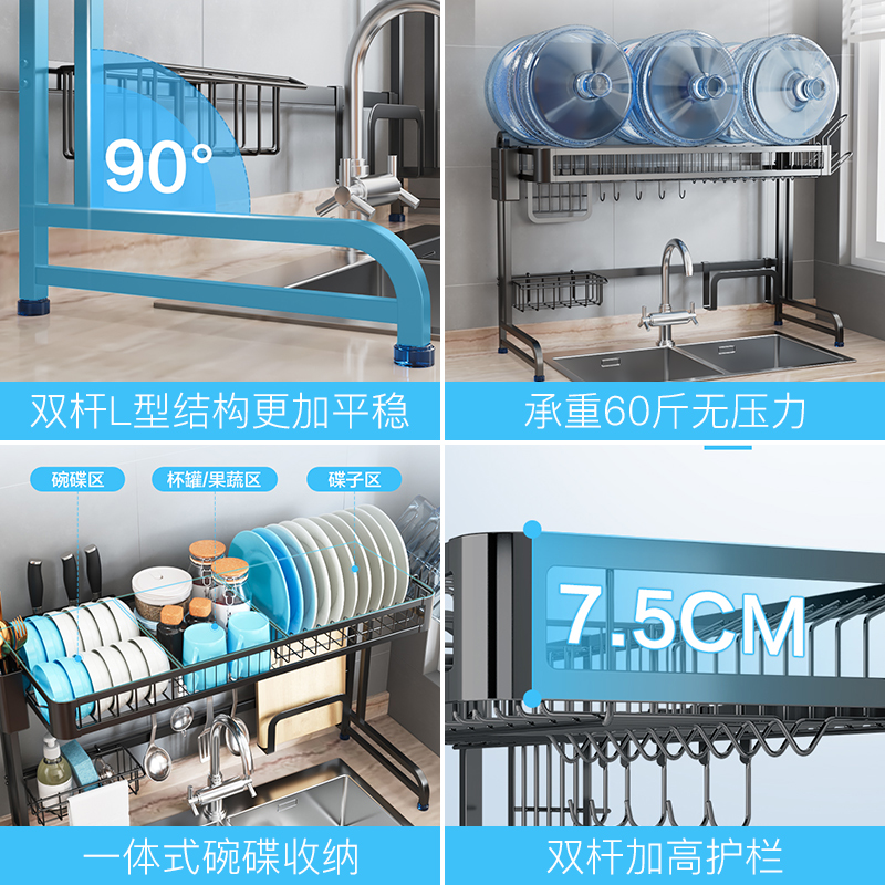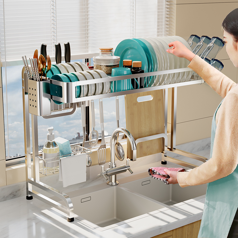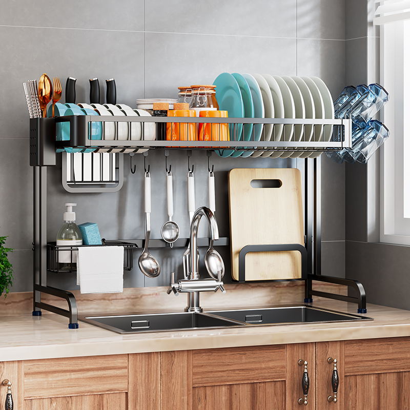 Kitchen stainless steel sink tray dish drain rack knife holder household kitchen storage rack bowl chopsticks filter rack