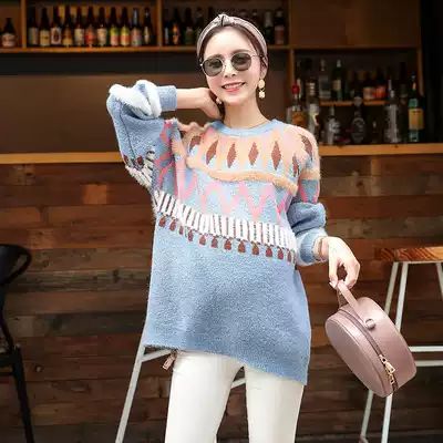 Pregnant women's sweater medium and long version 2021 new spring and autumn loose Korean knitwear fashion outer wear autumn bottoming shirt
