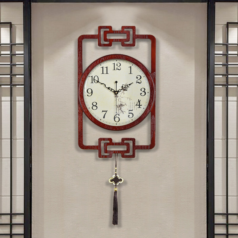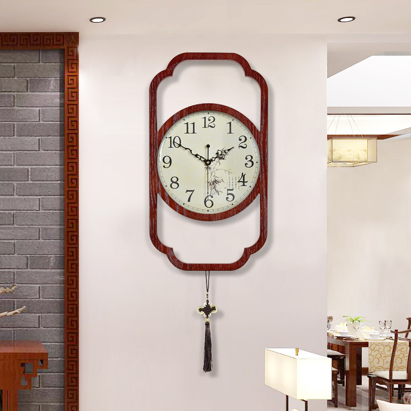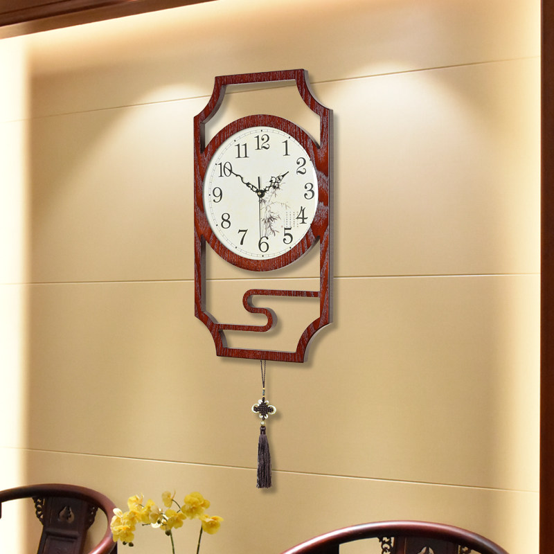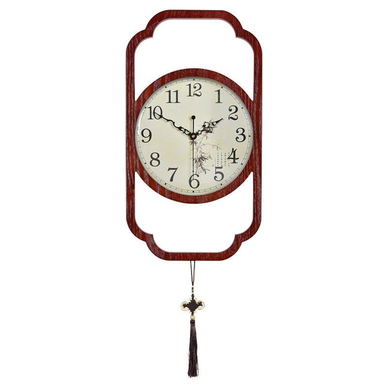 New Chinese wall clock Retro Chinese style pastoral hanging watch Simple decorative watch Household living room silent creative clock