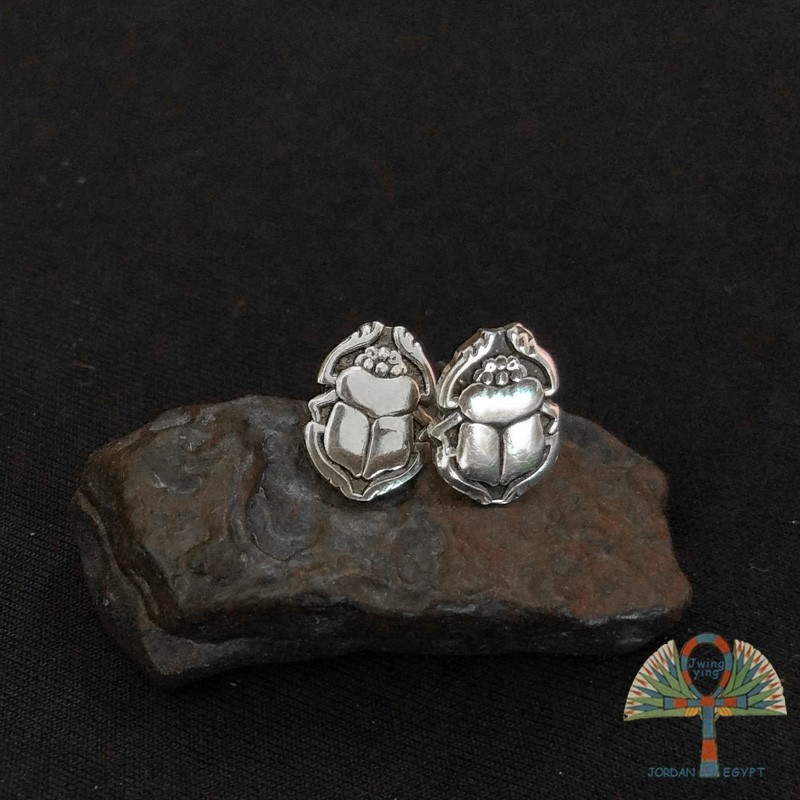 Imported ancient Egyptian wind ornaments Sleeping Lotus Lotus Lotus Eyes Sacred Beetle Ear-Ears Needle Silver Accessories