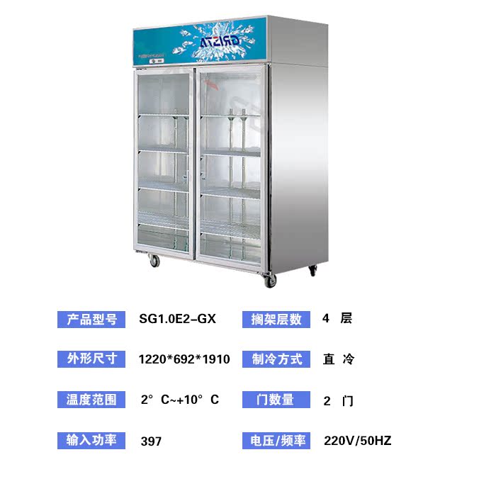 Star display cabinet double-door fresh-keeping cabinet supermarket beverage cabinet commercial large-capacity refrigerator refrigerator vertical freezer