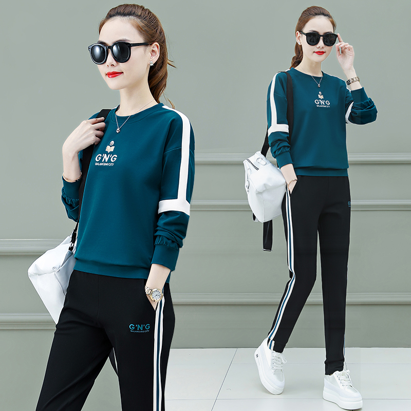 Sleeve Head Casual Sports Suit Women Spring Autumn Han Edition Fashion Loose Round Collar Running Vee Clothing Two Sets Jumping Clothes