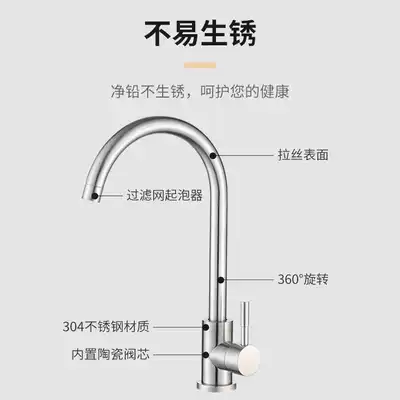 Kitchen faucet Hot and cold kitchen faucet Brass body 304 stainless steel sink sink faucet can be rotated