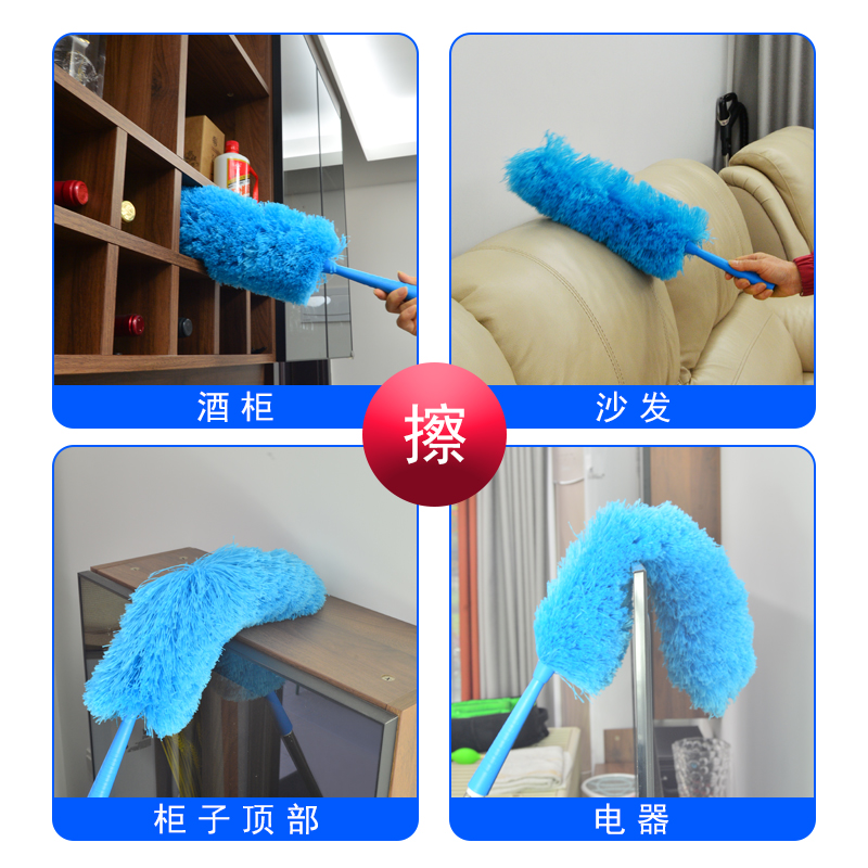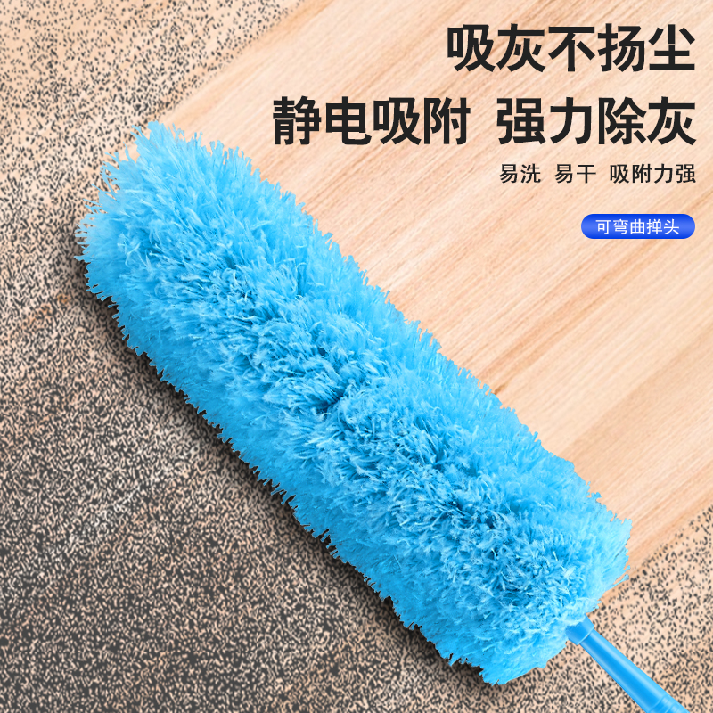 Blue fiber chicken feather dust removal household detachable retractable stainless steel pole car cleaning tool