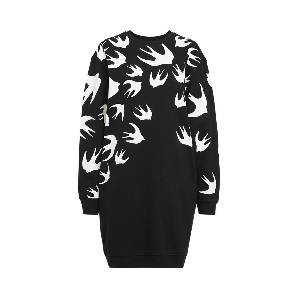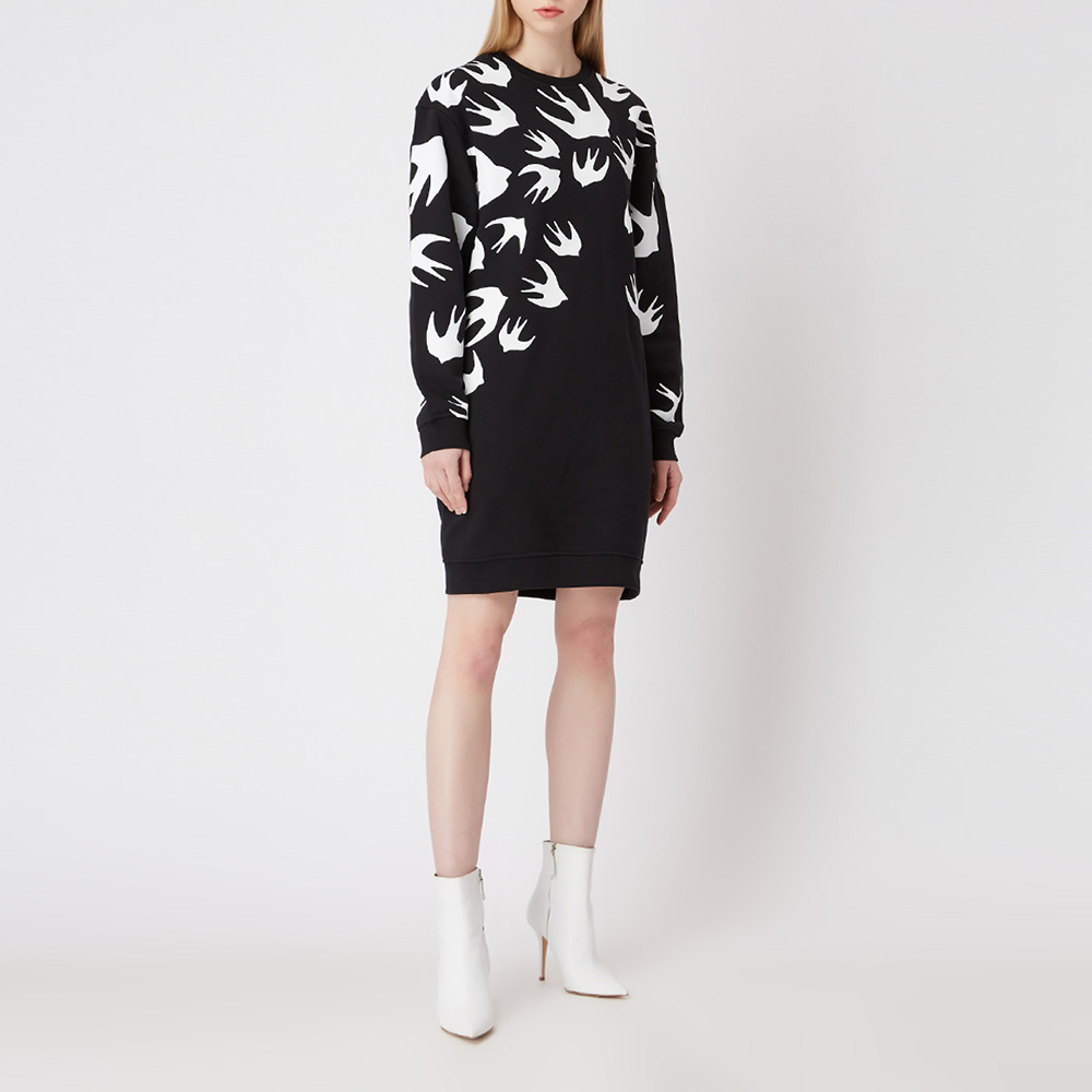 McQAlexanderMcQueen Black and White Cotton Swallow Printed Dress New Year Gift