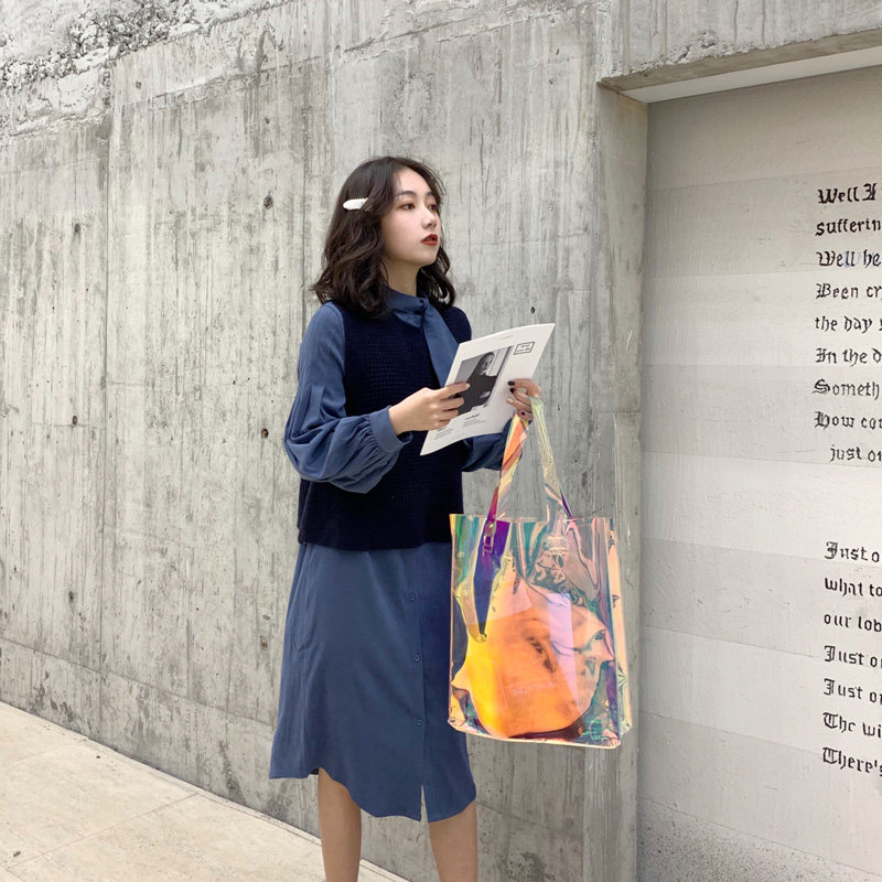 Laser Pvc Bag Packs Women Transparent Handbag Single Shoulder Shopping Bag Custom Plastic Bag Subjelly Dazzling Mesh Red