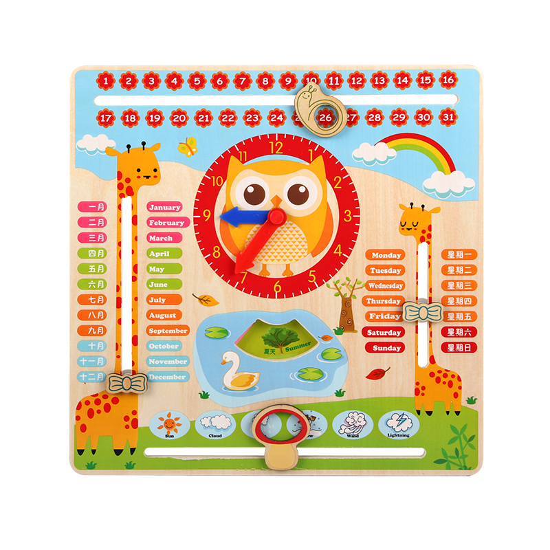 Children's wooden multifunctional early education Puzzle Calendar Clock Cognition Boy Female baby 1-3-6-year-old building block toy