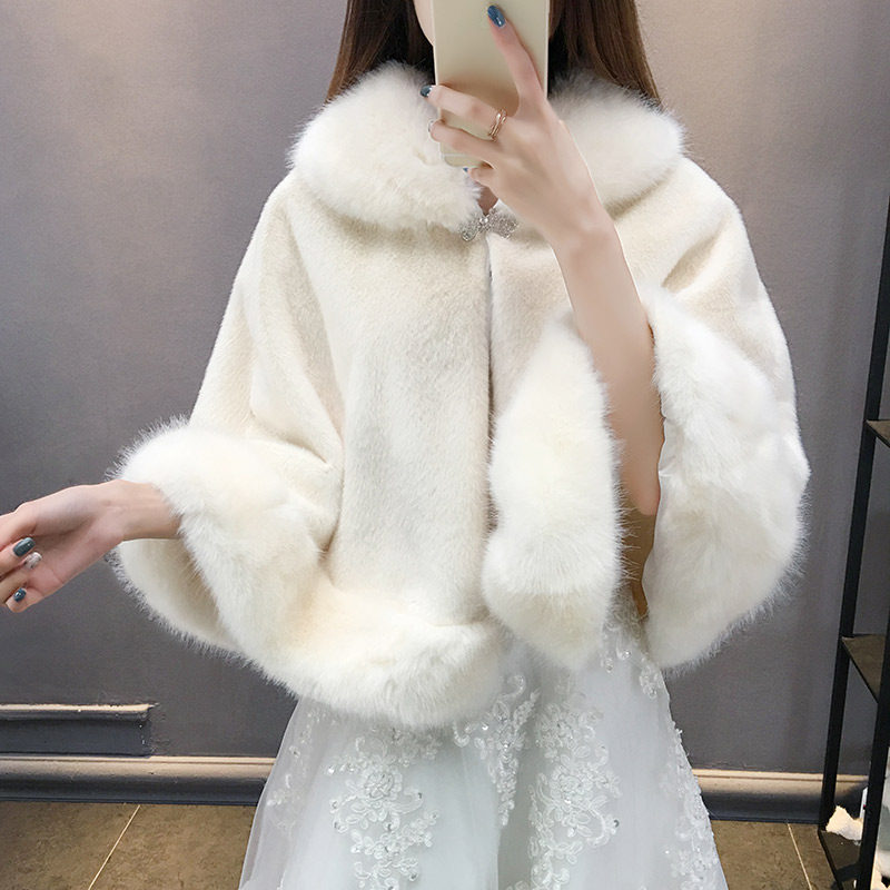 Large butterfly shirt (champagne) - plus cotton lift grade version double face hair style white (fur liner) Snow fox fur large shawl shoulder wine red white collar butterfly shirt Snow fox fur large shawl white