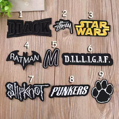 Fashion trend brand men's clothing repair program cloth patch appliqué embroidery flower chapter black badge down jacket jeans repair hole