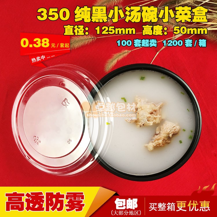 Anti-fog 350ml pure black business small soup bowl disposable plastic fresh rice bowl dessert box