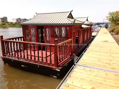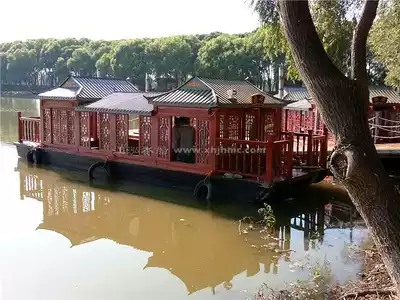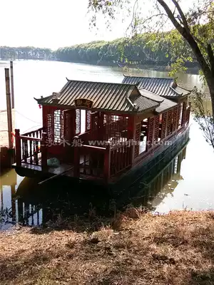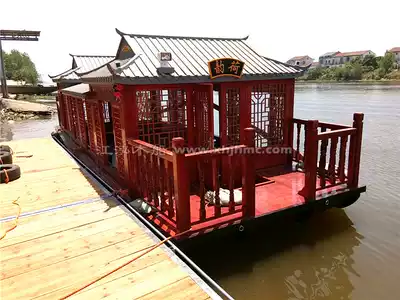 Wooden boat Large antique double-decker water catering boat Park scenic area Electric yacht boat Solid wooden sightseeing tourist boat