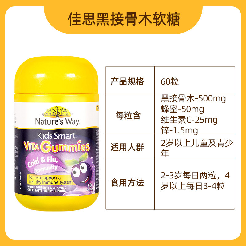Australia imported Jiasmin children's infant baby multivitamin small black fruit black elderberry gummy 60 grains