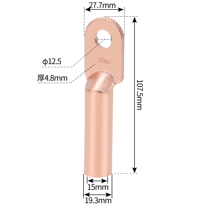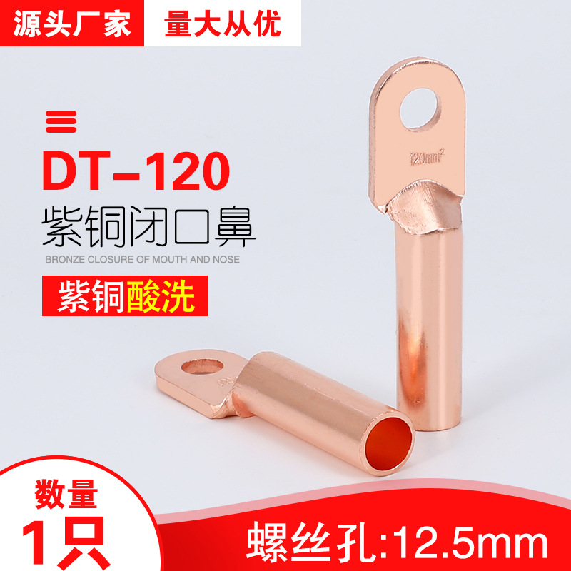DT-120 square T2 copper national standard closed copper terminal wire ear chain nose cold-pressed terminal pickling block oil