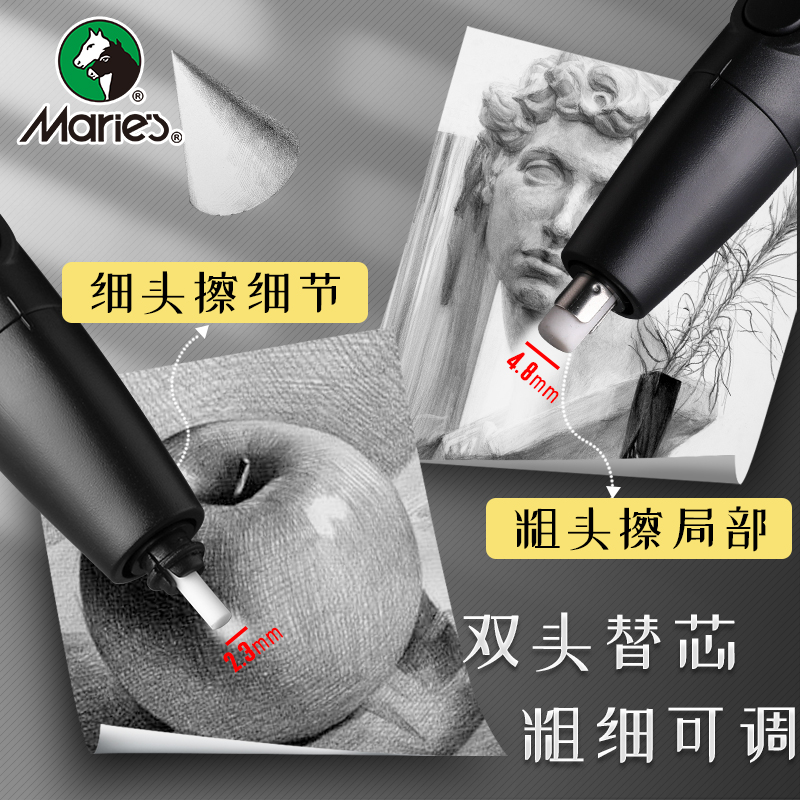 Malli brand electric high light sketch eraser children's creative electric rubber automatic rubber student rubs net paint eraser double head thickness length adjustable painting eraser no crumb