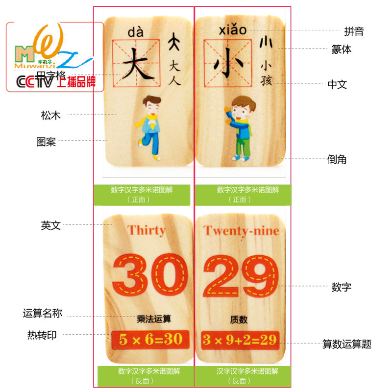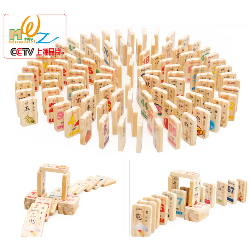 100 pieces of Chinese characters digital operation double-sided domino children's building blocks educational toys kindergarten large class