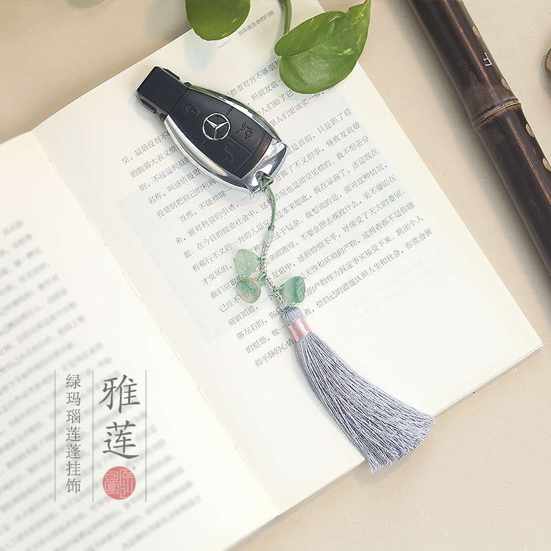 Zhuang Original Natural Green Agate Lotus Pendant Mobile Phone Charm Key Chain Tassel Pressed Lapel Bag Hanging Creative Birthday Gift