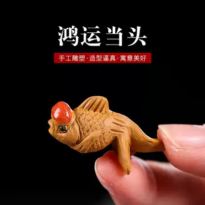 Purple sand mini goldfish tea pet ornaments creative handmade tea play Hongyun head fish kung fu tea plate accessories