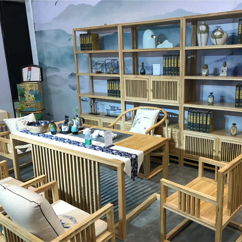 New Chinese style tea table wooden home simple Kung Fu table solid wood ash wood color tea table square tea room furniture